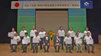 | 令和7年8月6日 静岡市優良建設工事等表彰式 「静岡市優良建設工事等表彰式」が、しずぎんホールユーフォニアにて約160名の来場者を集め開催され、優良建設工事等の施工業者、技術者に対し静岡市長より表彰状が授与されました。 当協会関係の受賞者は以下の通りです。 |